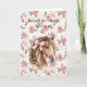 Pink Roses Floral Pretty Horse Pink Bow Birthday Card