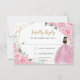Pink Roses Floral Quinceanera Princess Dress Reply RSVP Card