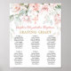 Pink Roses Greenery Foliage Girl Baptism Seating Chart. This design features an illustration of pale pink roses and leafy green stems in watercolor style. On the top of the poster there is an image of a Cross. This is 8 person, 6 table seating chart poster. You can adjust text according to your requirements.