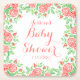 Pink Roses Girly Baby Shower Square Paper Coaster