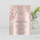 Pink Roses Glitter Drips Rose Gold 90th Birthday Invitation
