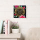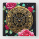 Pink roses and teal leaves on this gold filigree Clock surrounded by stars