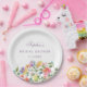 Personalise this Lilac Script Floral Bridal Shower Paper Plate with your Name, and add a Bright, Elegant Touch to your Bridal Shower Party or Picnic. The Vibrant Blush Pink, Lilac, Peach and Yellow Roses against a Crisp, White background add a pop of colour. Perfect for a Modern Brdial Shower table setting, these plates are sure to add a touch of Chic.
