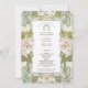 This vintage-inspired wedding program is a beautiful representation of Art Nouveau design, featuring elegant pink roses and soft green floral motif. The front of the card welcomes guests with delicate flowers, surrounded by swirling green vines, bringing a natural and sophisticated touch to the overall layout. The soft beige background contrasts perfectly with the lush botanical elements, while the subtle use of gold accents adds a touch of timeless luxury. On the reverse, the wedding party details are framed within the same intricate floral design, ensuring a cohesive and artistic feel. This design is ideal for couples seeking a refined, elegant, and nature-inspired wedding theme.