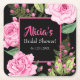 Pink Roses on Black Bridal Shower Square Paper Coaster