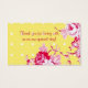 Designed for this size card only, this Pink Roses On Yellow Wedding Favour Hang Tag is great for Cottage Style Weddings Or Vintage Weddings. Tie it to your wedding favours as a thank you gift. Just use a hole punch at the hole mark.