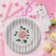 A Beautiful Single Pink Rose Center With Gray And Pink Guest Paper Plate For Showers, Or Brunches