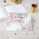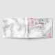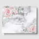 Wedding Guest Book | Elegant Pink Roses adorn the diagonal corners with a marble like watercolor texture in pewter grey background - A combination of script calligraphy combined with a minimalist, contemporary style text layout makes it a trending style wedding suite. This is part of a wedding stationery collection with matching wedding accessories. Design created for the BarefootBride™ © by WhimsicalArtwork™