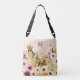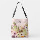 A floral crossbody bag featuring a canvas adorned with enchanting poppy flowers and delicate roses, set against a soft pink background and personalised with a monogram. Combine your favourite jeans and tee for an effortlessly chic everyday look.
