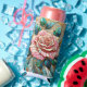 Pink Roses Stained Glass Mosaic Monogram Seltzer Can Cooler