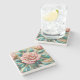 Pink Roses Stained Glass Mosaic Stone Coaster