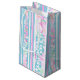 A pretty Small Gift Bag, with a pattern of Pink, Turquoise and White Deckchair stripes and Pink Roses. Part of the Posh & Painterly 'Summer Days' collection, this pattern can easily be adjusted to fit any Gift Bag.
