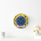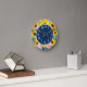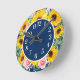 Cute and stylish boho-style yellow sunflowers and pink roses on navy blue wall clock