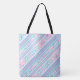 A very chic Tote Bag, with a pattern of diagonal Pink, Sky Blue and wWhite Deckchair stripes and Pink Roses and White Butterflies on Sky Blue Part of the Posh & Painterly 'Summer Days' collection, this pattern will fit any Tote Bag and can be customised by rotating the pattern or changing the scale for a very different look.