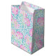 A pretty Medium Gift Bag, with a pattern of bright pink roses on a sky blue background, dotted with little white butterflies. Part of the Posh & Painterly 'Summer Days' collection, this pattern can be adjusted to fit any Gift Bag.
