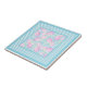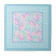 A pretty Ceramic Tile, with a pattern of pink roses on a sky blue background, dotted with white butterflies within a border of Sky Blue and White Check Gingham. Add a wooden frame to make a useful and decorative trivet!