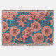 Pink roses with blue leaves on blue throw blanket