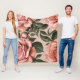 Pink Roses With Brushstroke Leaves Fleece Blanket