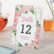 Pink Roses with Foliage Wedding Table Number Pedestal Sign