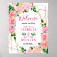 Pink Roses with Foliage Wedding Welcome Sign
