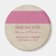 Elegant and chic Rustic Damask Save the Date Magnet featuring a vintage textured paper look background and a flourish damask pattern border in magenta. Easy to customise, simply add your wedding details. Click "Customise It" to find more personalisation options.