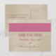 Elegant and chic Rustic Damask Save the Date Postcard featuring a vintage textured paper look background and a flourish damask pattern border in magenta. Easy to customise, simply add your wedding details. Click "Customise It" to find more personalisation options.