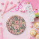 Pink Sage Green Flowers Leave Watercolor Pattern Paper Plate