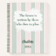 Blush pink and sage green stripes with a white brush stroke. Inspiratiional, motivational Quote: The future is written by those who dare to plan. Personalise and add your name and a year.