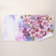Artistically drawn, branch of pink, cherry blossoms on picturesque, textured background, painted over with white, pink and blue paint. Pink Sakura