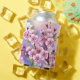 Artistically drawn, branch of pink, cherry blossoms on picturesque, textured background, painted over with white, pink and blue paint. Pink Sakura
