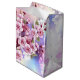Artistically drawn, branch of pink, cherry blossoms on picturesque, textured background, painted over with white, pink and blue paint. Pink Sakura