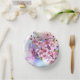 Artistically drawn, branch of pink, cherry blossoms on picturesque, textured background, painted over with white, pink and blue paint. Pink Sakura