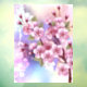 Artistically drawn, branch of pink, cherry blossoms on picturesque, textured background, painted over with white, pink and blue paint. Pink Sakura