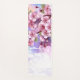 Artistically drawn, branch of pink, cherry blossoms on picturesque, textured background, painted over with white, pink and blue paint. Pink Sakura