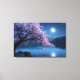 Pink Sakura Tree & Full Moon Night Canvas Print