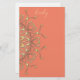 Luxurious elegant personalised stationery paper design design featuring gold filigree mandala with diamonds on a pink salmon background. The background colour and the text are fully customisable.