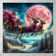Santa in pink amid a pink moon!