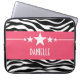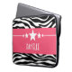 Trendy and modern Sassy Star Zebra Laptop Sleeve featuring a chic black and white zebra print background and a bold magenta border adorned with a fun star motif. This sleeve is perfect for protecting your gadget with style! This girly design may be customised with the personalised text of your choosing. Click "Customise It" to find more personalisation options.
