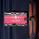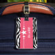 Trendy and modern Sassy Star Zebra Luggage Tag featuring a chic black and white zebra print background and a bold magenta border adorned with a fun star motif. This girly design may be customised with the personalised text of your choosing. Click "Customise It" to find more personalisation options.