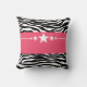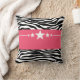 Trendy and modern Sassy Star Zebra Pillow featuring a chic black and white zebra print background and a bold magenta border adorned with a fun star motif. This girly design may be customised with the personalised text of your choosing. Click "Customise It" to find more personalisation options.