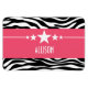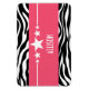Trendy and modern Sassy Star Zebra Premium Magnet featuring a chic black and white zebra print background and a bold magenta border adorned with a fun star motif. This girly design may be customised with the personalised text of your choosing. Click "Customise It" to find more personalisation options.