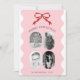 Pink Scalloped Red Bow Christmas Photo Collage Holiday Card