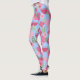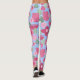 These leggings have a Scandinavian design of flowers and leaves in various shades of pink and green on a field of blue.