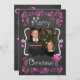A chalkboard look background with beautiful scrolls and stars of pink and white text that reads "Merry Christmas" on front and "May all your days be merry & bright" on back. This beautiful customised holiday Christmas photo card has several star ornaments, and a bird in a nest design and areas you can easily add your names, the current year, and photo!