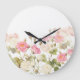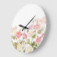 Pink Sepia Vintage Roses Meadow Illustration Large Clock