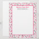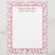 Letterhead featuring a pink sewing themed border with illustrations of sewing machines, pin cushions, fabric swatches, scissors, spools of thread, and sewing needles. Personalise the text with business information.