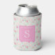 Drink in style with this pink shabby chic tea party patterned can cooler with your personalised monogram initial or name. This pink shabby chic tea party monogram can cooler features a hand drawn repeating pattern of vintage pink tea cups and tea pots, shabby chic roses, and gold confetti dots on a mint green background. Bring the tea party to the party with this personalised monogram cute tea cups drink cooler. This floral tea cups pattern is an original pattern made by OhMyStarling! This cute tea cups and roses can cooler will keep you looking cute with it's mint green, pink, and gold and fun textured patterns. Add your own name or monogram on this personalised drink cooler by clicking "personalise this template".