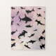 Pink shadow fish shark on gradient galaxy Space Jigsaw Puzzle