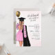 Pink She Believed Graduation Party Invitation features quote "she believe she could so she did" and portrait illustration of blonde female in pink dress with pink flowers and a gold balloon. Feature your favourite photo of your graduate on the back of the invite. The perfect feminine graduation party invitation.