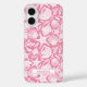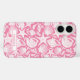 Customize this pink shell pattern iPhone 16 case with your your name in a trendy modern CAP font in pink on white. It's so modern and beachy!